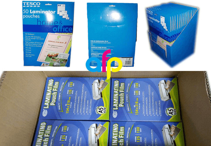 Pouch laminating film is used for making simple and smaller laminates. We use to laminate id cards, tags and small paper materials. Lamination width is limited in pouch laminators. This is useful in offices and home.